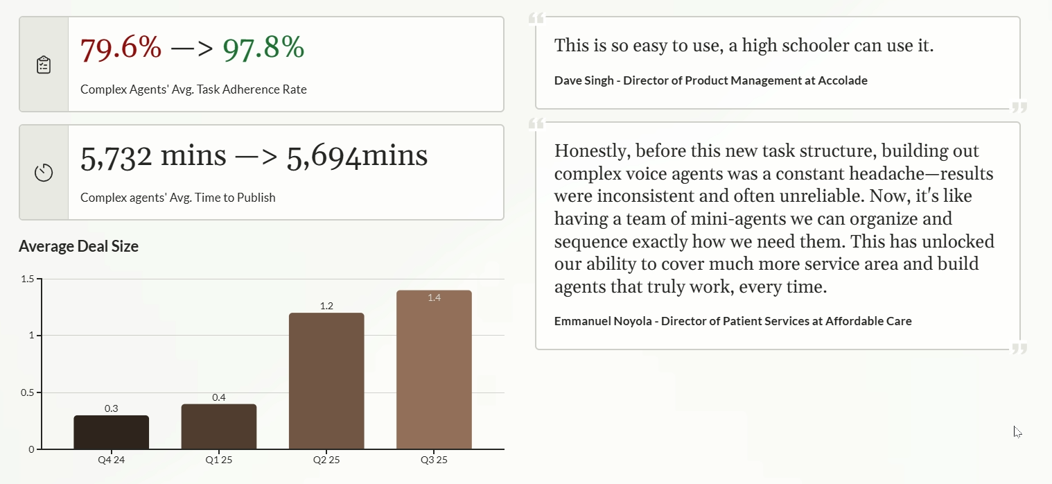 A systems level re-architecture that transformed a prompt-only approach into a scalable, enterprise-grade platform—enabling reliability, unlocking enterprise deals, and generating $8M ARR in the first year.